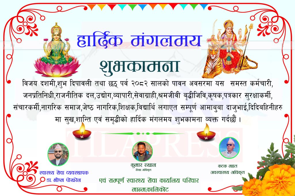 कालिकोट एकिकृत जनस्वास्थ्य अभियान तथा विशेषज्ञ स्वास्थ्य सेवा शिविर सम्बन्धि पचालझरनाको स्वास्थ्य चौकी राम्नाकोटमा सुरु भएको एकिकृत जनस्वास्थ्य अभियान तथा विशेषज्ञ स्वास्थ्य सेवा शिविरको पहिलो दिन ४५८ जनाले सेवा लिएका…