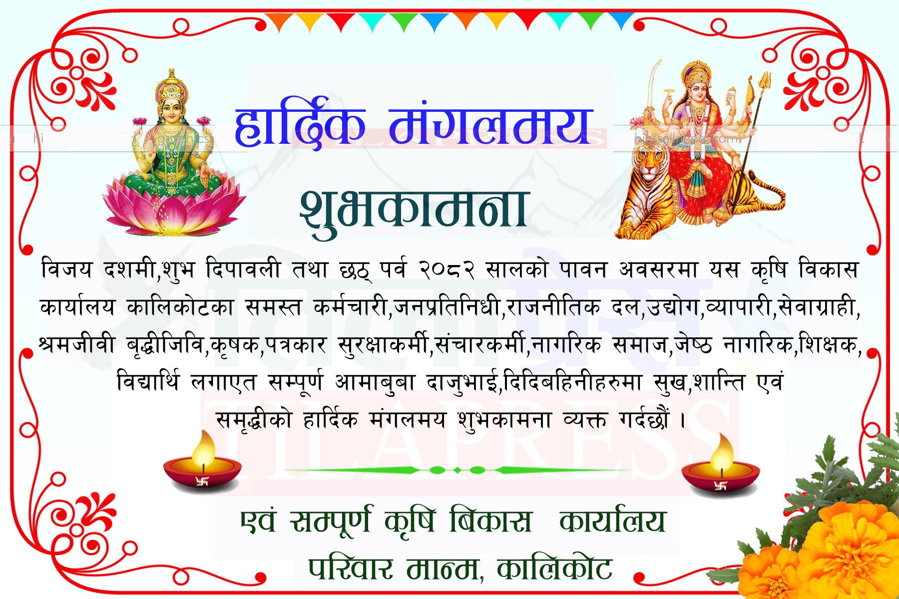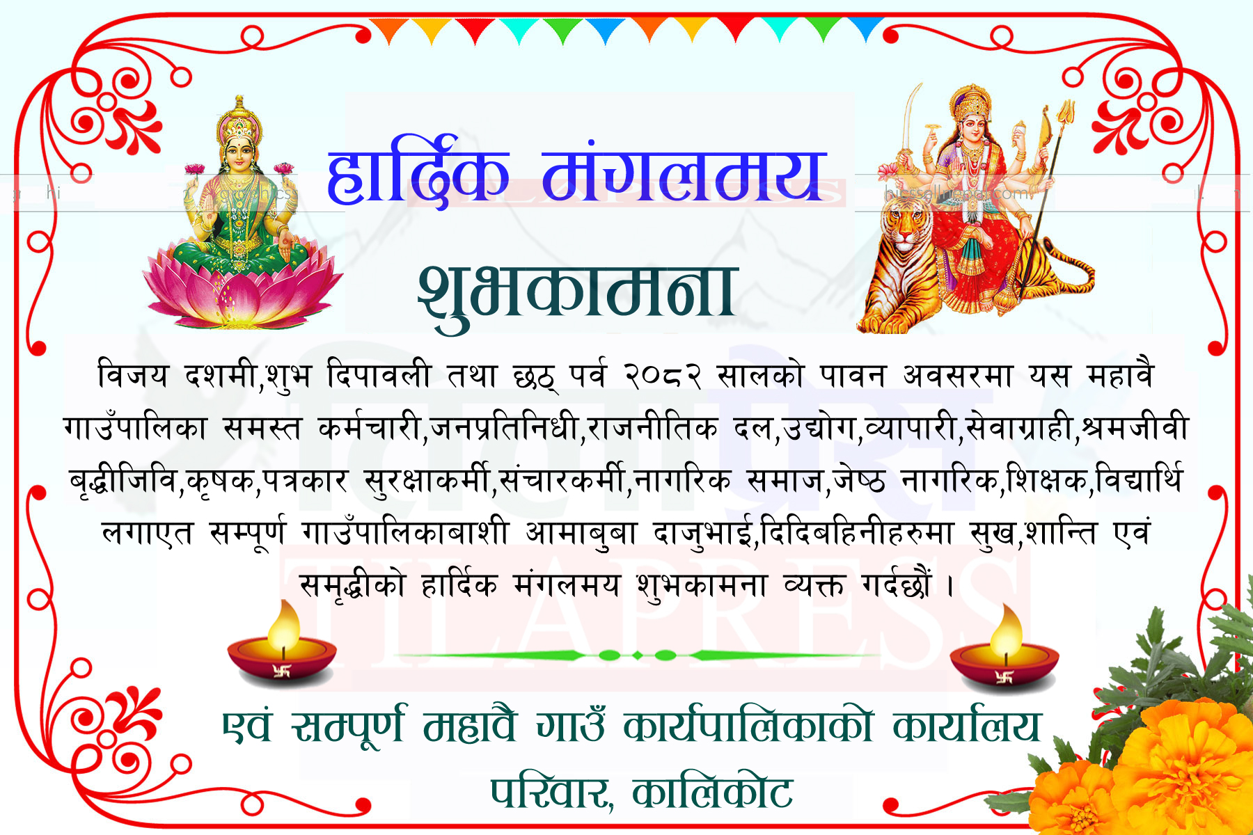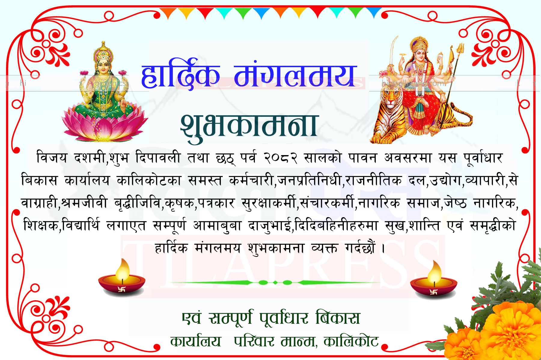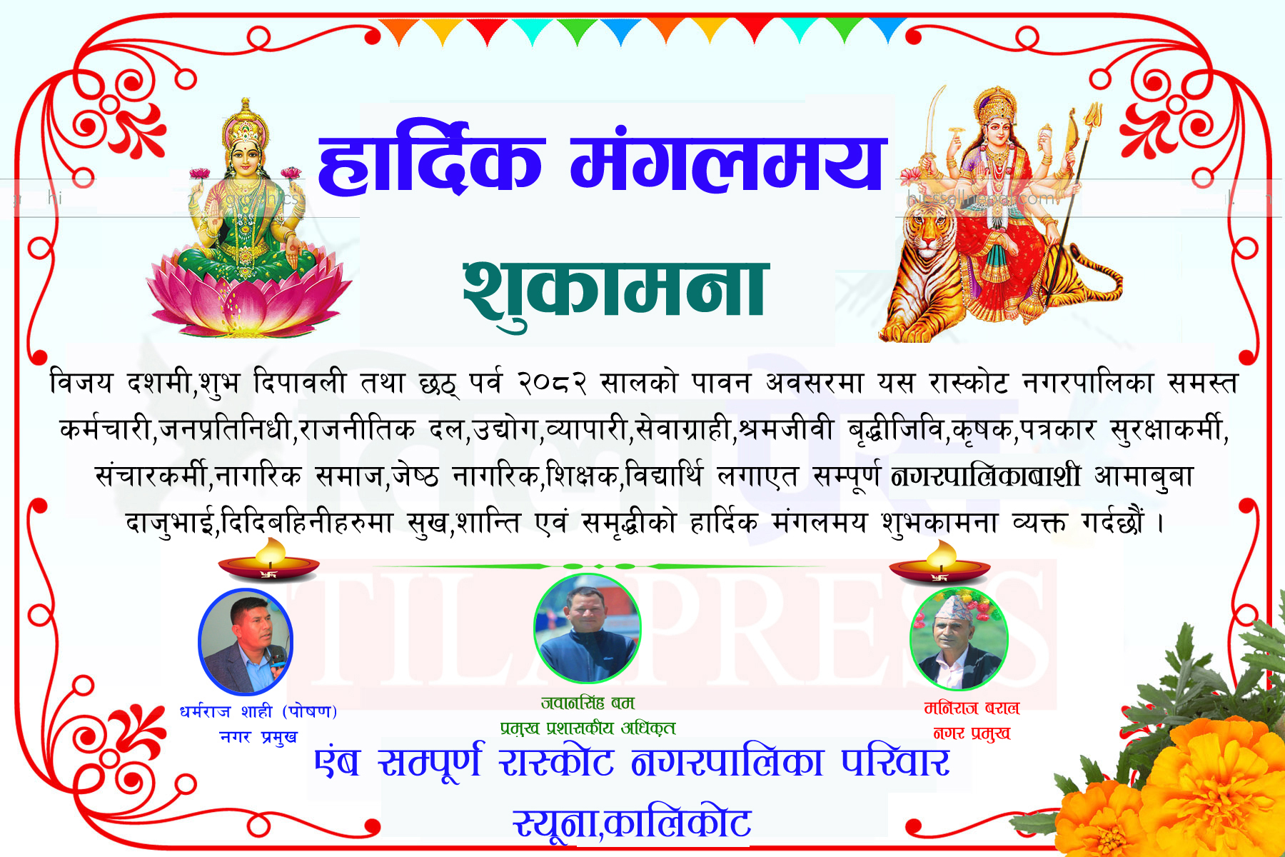 कालिकोट : रास्कोट नगरपालिका वडा नं. १ स्थित देउरा मालिका युवा क्लबको आयोजनामा अन्तर पालिका वडा स्तरिय पुरुष भलिबल प्रतियोगिता आगामी कार्तिक ३ गतेदेखि ५ गतेसम्म आयोजना हुने भएको छ…