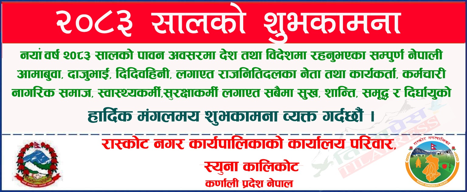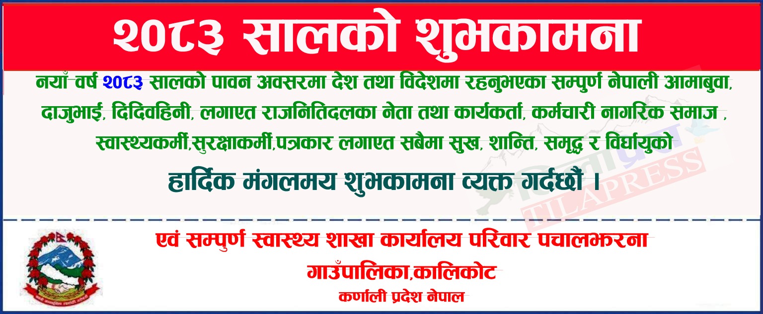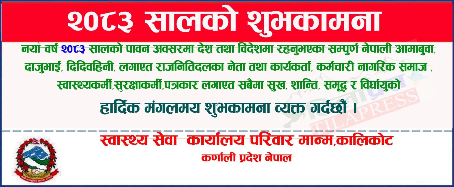 कालिकोट एकिकृत जनस्वास्थ्य अभियान तथा विशेषज्ञ स्वास्थ्य सेवा शिविर सम्बन्धि पचालझरनाको स्वास्थ्य चौकी राम्नाकोटमा सुरु भएको एकिकृत जनस्वास्थ्य अभियान तथा विशेषज्ञ स्वास्थ्य सेवा शिविरको पहिलो दिन ४५८ जनाले सेवा लिएका…