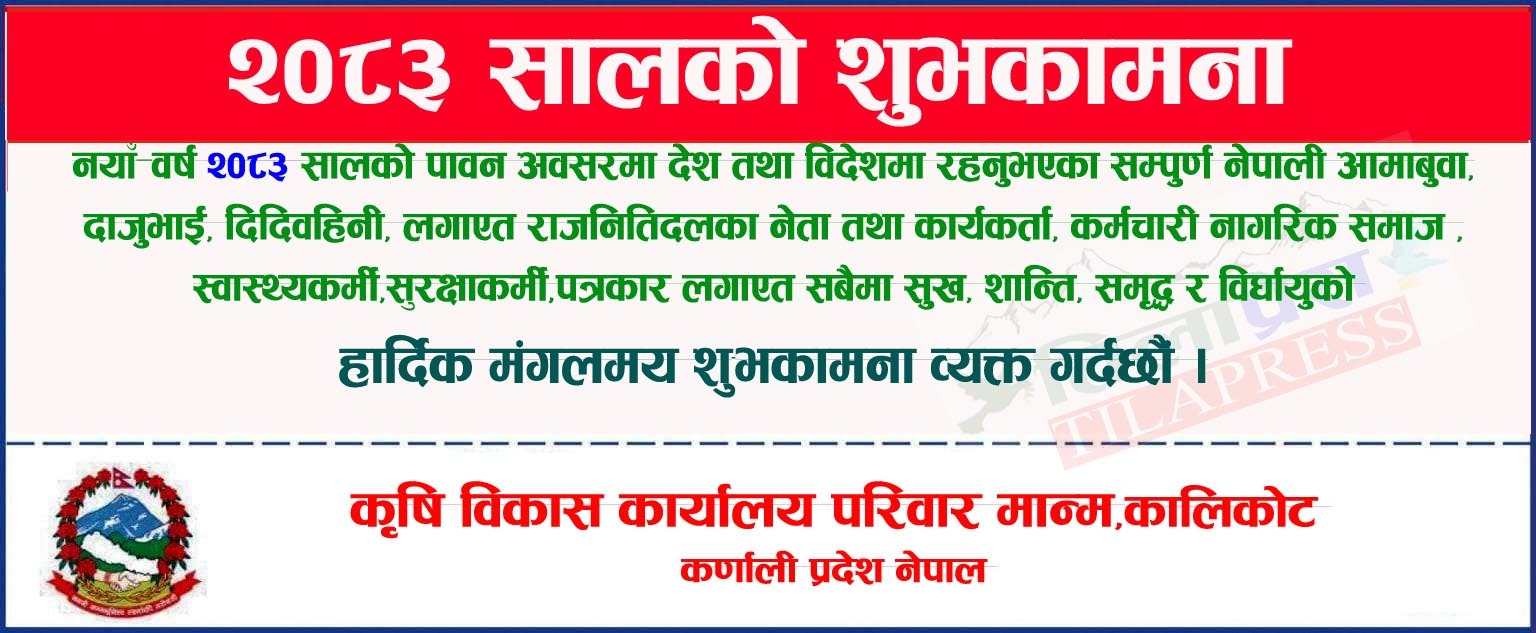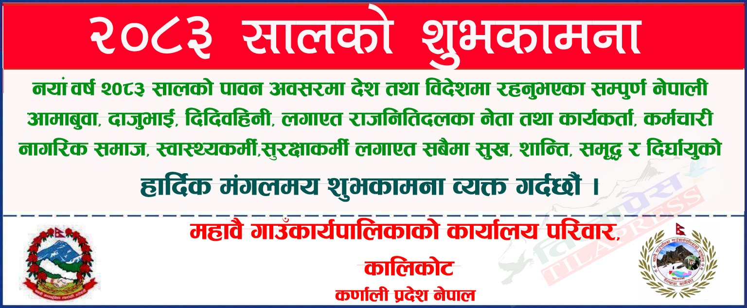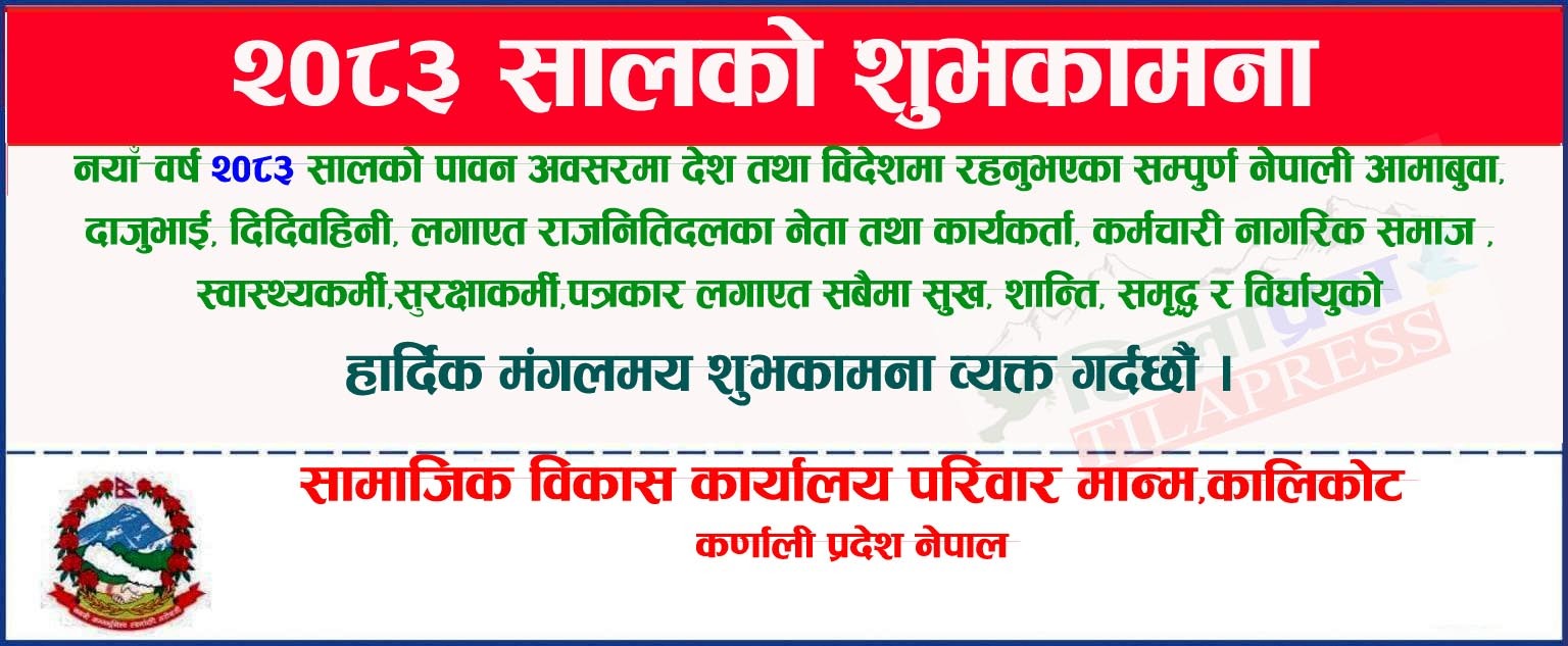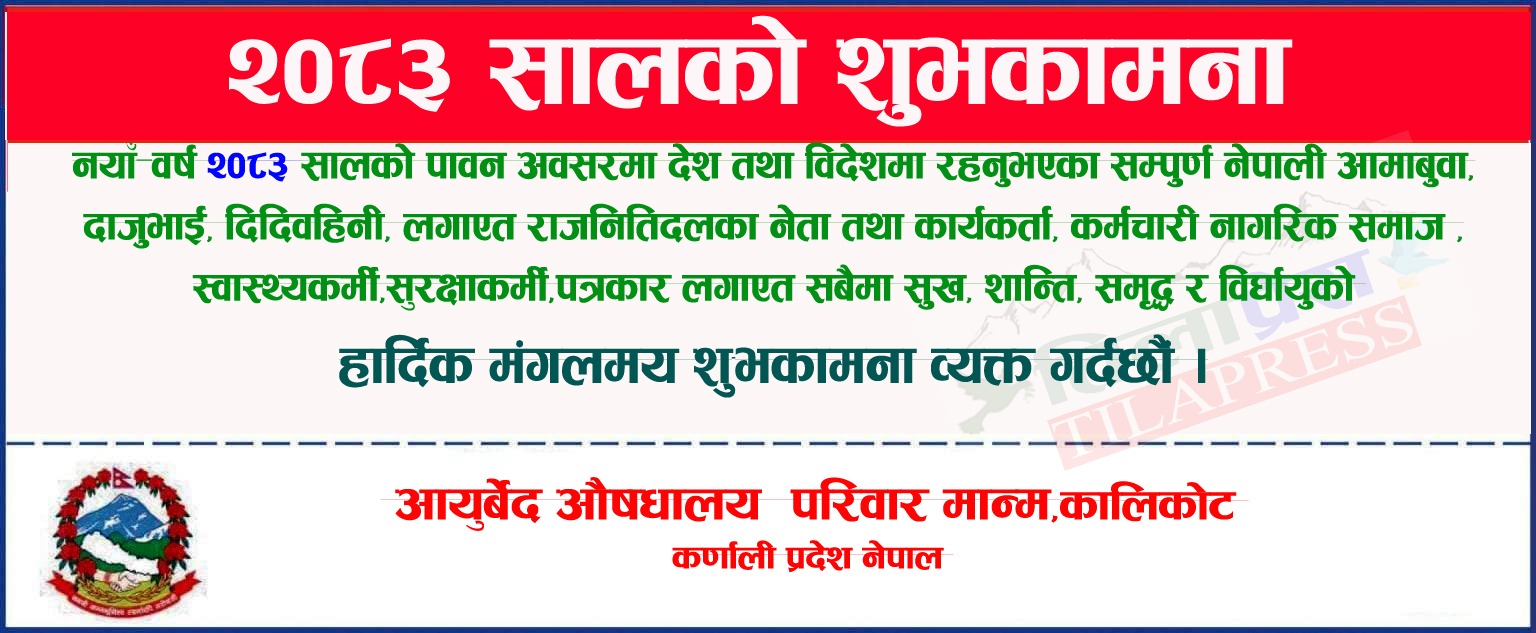 कालिकोट एकिकृत जनस्वास्थ्य अभियान तथा विशेषज्ञ स्वास्थ्य सेवा शिविर सम्बन्धि पचालझरनाको स्वास्थ्य चौकी राम्नाकोटमा सुरु भएको एकिकृत जनस्वास्थ्य अभियान तथा विशेषज्ञ स्वास्थ्य सेवा शिविरको पहिलो दिन ४५८ जनाले सेवा लिएका…