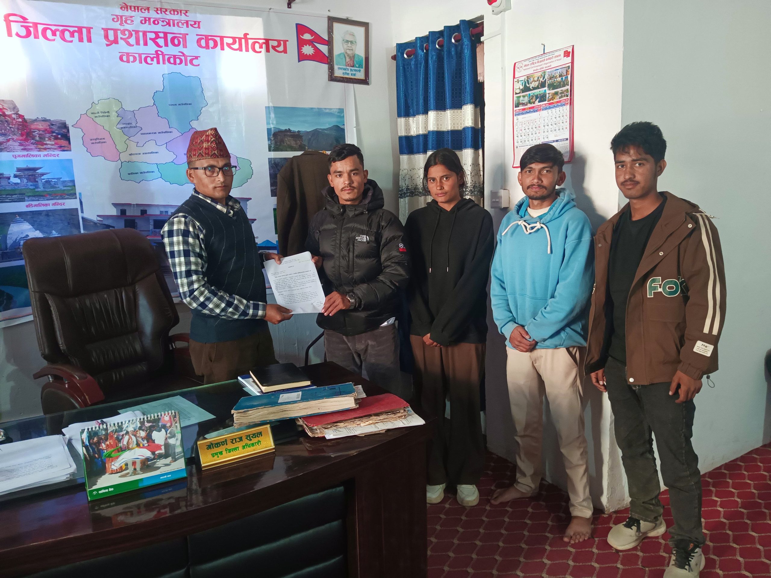 कालिकोटमा ११औं राष्ट्रिय उद्योग दिवस-चार उद्योगी सम्मानित जेन–जी प्रतिनिधि मनिस शाहीकाे नेतृत्वमा प्रमुख जिल्ला अधिकारी लाई ध्यानाकर्षण–पत्र शान्नित्रिवेणी गाउँपालिकाका गतिविधि सार्वजनिक, नागरिकसँग सीधा संवाद महिला अधिकारकर्मी र नागरिक समाजका लागि दुई दिने तालिम सुरु नेकपा (एस) ले वराल र शाहीलाई केन्द्रीय सदस्यमा चयन गर्यो जेन–जी आन्दोलन बारे माओवादी केन्द्र कालिकोटको समीक्षा प्रतिनिधि सभा विघटन, फागुन २१ गते निर्वाचन घोषणा रास्कोट–४ मा युवाहरुकाे सक्रियतामा मन्दिर पुनर्निर्माण कालीकोट पूर्ण खोप सुनिश्चित जिल्ला घोषणा रास्कोटमा संयुक्त सरसफाई अभियान, सागाटिया नैकाला र कुमालबाडा खानेपानी योजनामा फिल्टर वितरण Posts navigation 1 2 … 28 Next