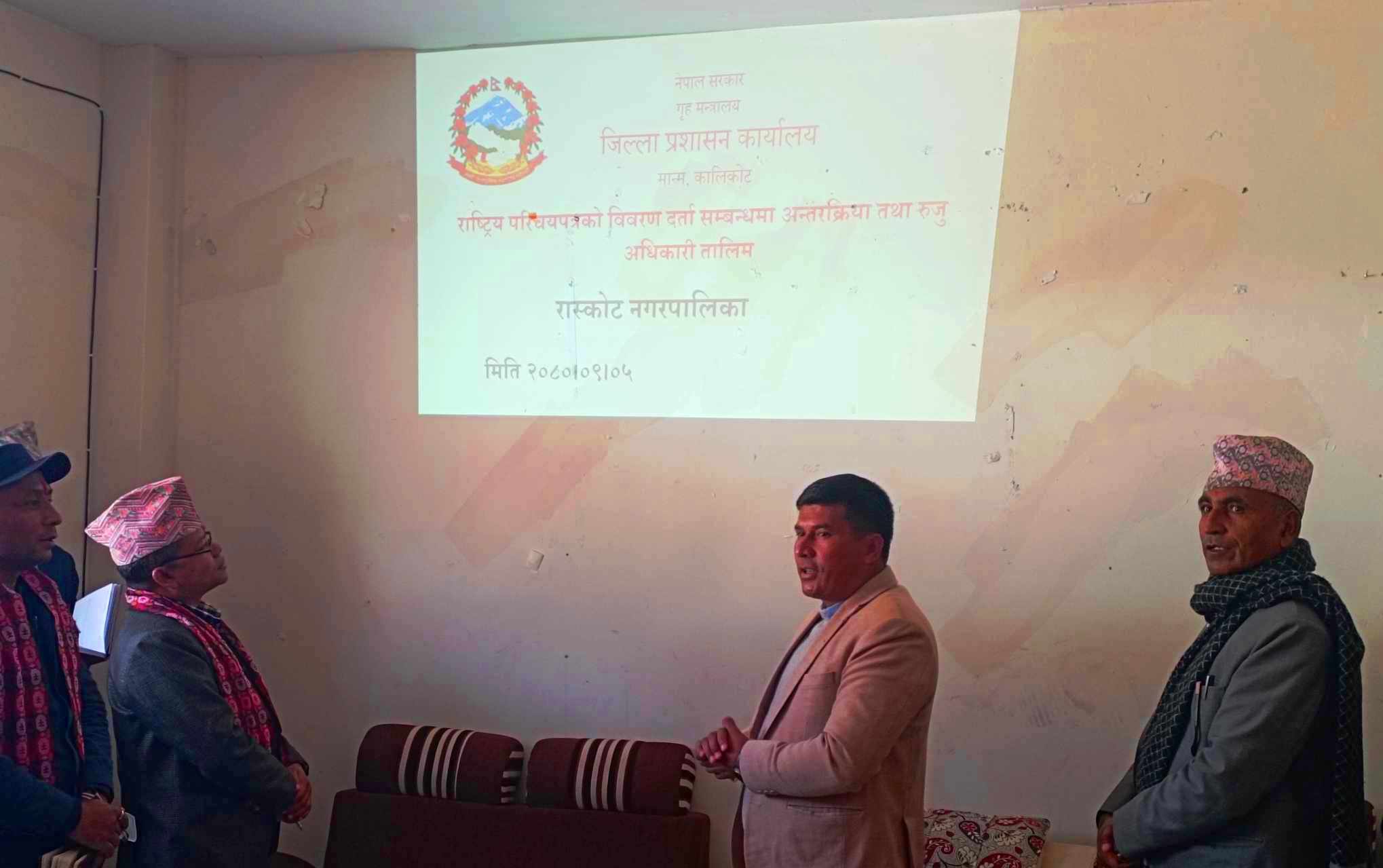 रास्कोट नगरपालिकामा राष्ट्रिय परिचयपत्रको विवरण दर्ता सम्बन्धमा अन्तरक्रिया तथा रुजु अधिकारी तालिम सम्पन्न टाइफाईड विरुद्धको खोप अभियान सम्बन्धि एक दिने अभिमुखिकरण सम्पन्न बाजुरा बाट सुर्खेत जादै गरेको जिप दुर्घटना सर्वेक्षण सम्बन्धी तथ्याङ्क गणकहरुका लागी २ दिने अभिमुखीकरण कार्यक्रम संचालन प्रत्यासी उम्मेदार, लुवार लगाएतका नेता नेकपा माओवादीमा प्रवेश रास्काेट नगरपालिका लेक बस्तिकाे अतिक्रमण जग्गा अब सरकारकाे दायरामा । वाई सि.एल.नेपाल कालिकोटको तेस्रो बिस्तारीत बैठक सम्पन्न Posts navigation Previous 1 … 30 31 32 … 40 Next