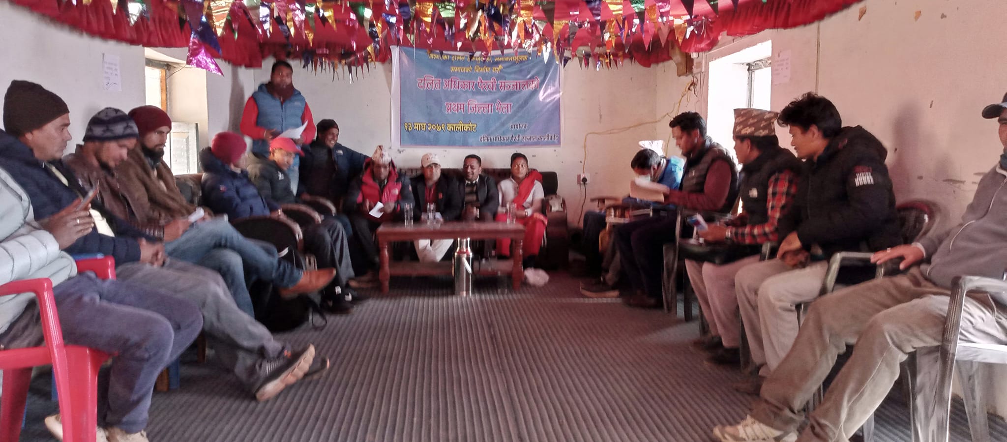 कमल कुमाल कालिकोट संसारका दलित एकजुट हौँ,समानतामुलक समाजको निर्माण गरौ भन्ने मुला नाराका साथ, दलित अधिकार पैरवी सन्जालको प्रथम जिल्ला भेला एक कार्यक्रमका विच सम्पन्न भएको छ । दलित अधिकार पैरवी सन्जाल कालिकोटको आयोजनामा माघ १३ गते प्रथम जिल्ला भेला भएको हो ।