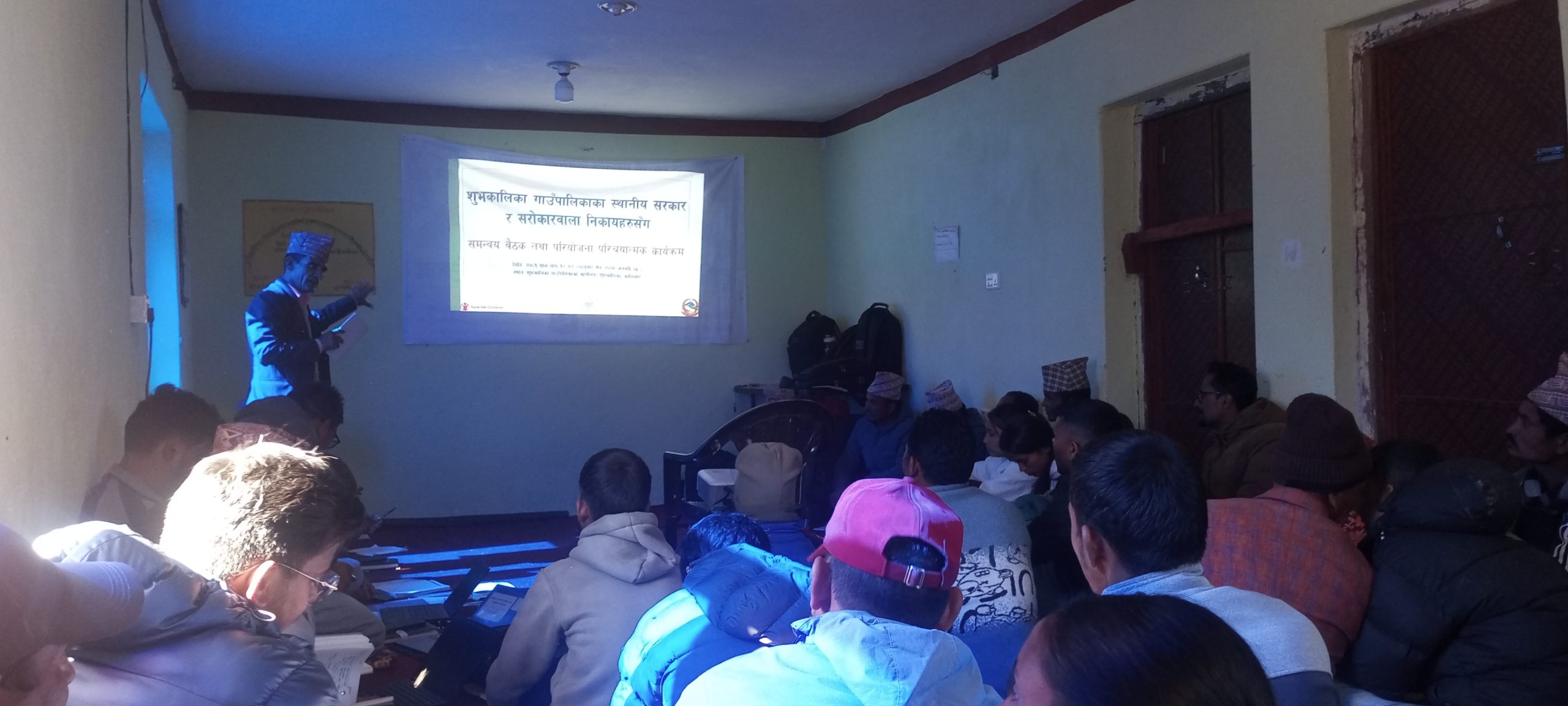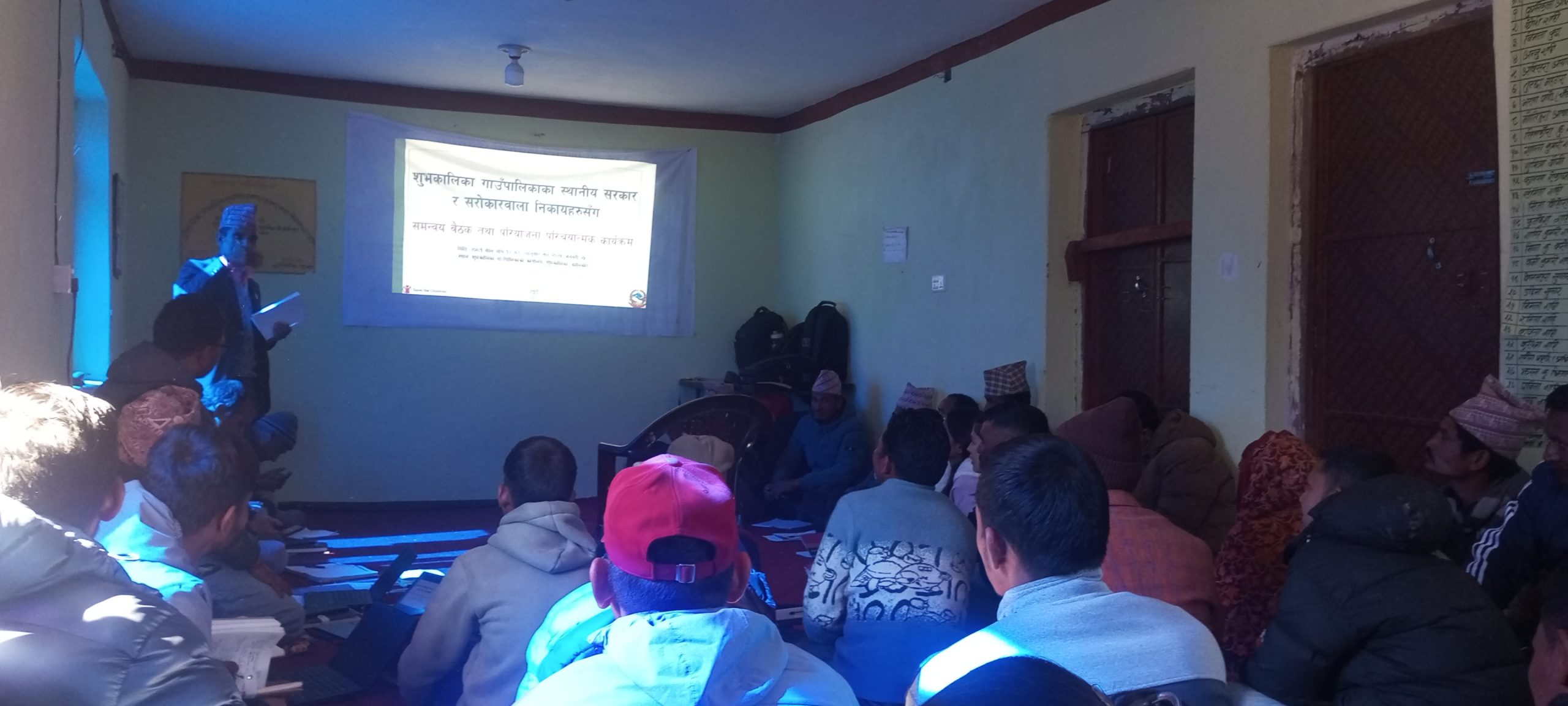 कालीकोट जिल्लको शुभकालिका गाउँपालिकामा स्थानीय सरकार र सरोकारवाला निकायहरु सँग समन्वय बैठक तथा परियोजना परिचयात्मक कार्यक्रम सम्मपन्न भएको छ । ‘ भविष्यलाई सुनौं बालअधिकारका लागी उठौं, ‘बालबालिकामा लगानी, सुनौलो भविष्यको थालनी , भन्ने मुल नाराकासाथ स्थानीय सरकार र सरोकारवाला निकायहरु सँग समन्वय बैठक तथा परियाेजना परिचयात्मक कार्यक्रम गरीएको हो ।