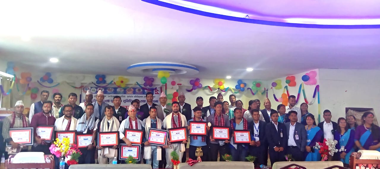 त्यस्तै जिल्लालाई पूर्ण खोप सुनिश्चित जिल्ला घोषणा गर्न महत्वपूर्ण भूमिका खेलेको भन्दै विभिन्न पालिकाका स्वास्थ्य शाखालाई सम्मान गर्नुका साथै जिल्लाभर उत्कृष्ट स्वास्थ्यकर्मीमा विरेन्द्र संज्याल र उत्कृष्ट कर्मचारी भद्र सेजुवाल सहितका कर्मचारीहरुलाई सम्मान गरिएको हो