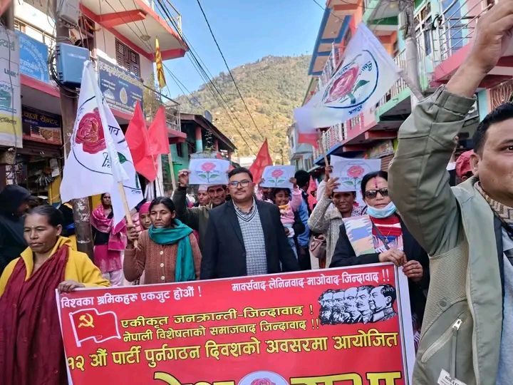 कालिकोट – नेपाल कम्युनिस्ट पार्टी (माओवादी) कालिकोट जिल्ला समितिको आयोजनामा मंसिर ८ गते मान्म बजारमा १२औँ पार्टी पुनर्गठन दिवस र २५औँ जनमुक्ति सेना नेपाल स्थापना दिवस भव्य रूपमा मनाइएको छ। ऐतिहासिक दिवसका अवसरमा निकालिएको र्यालीमा पार्टी नेता–कार्यकर्ता तथा स्थानीयको उल्लेखनीय सहभागिता रहेको आयोजकले जनाएको छ।